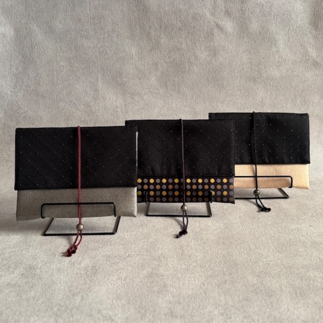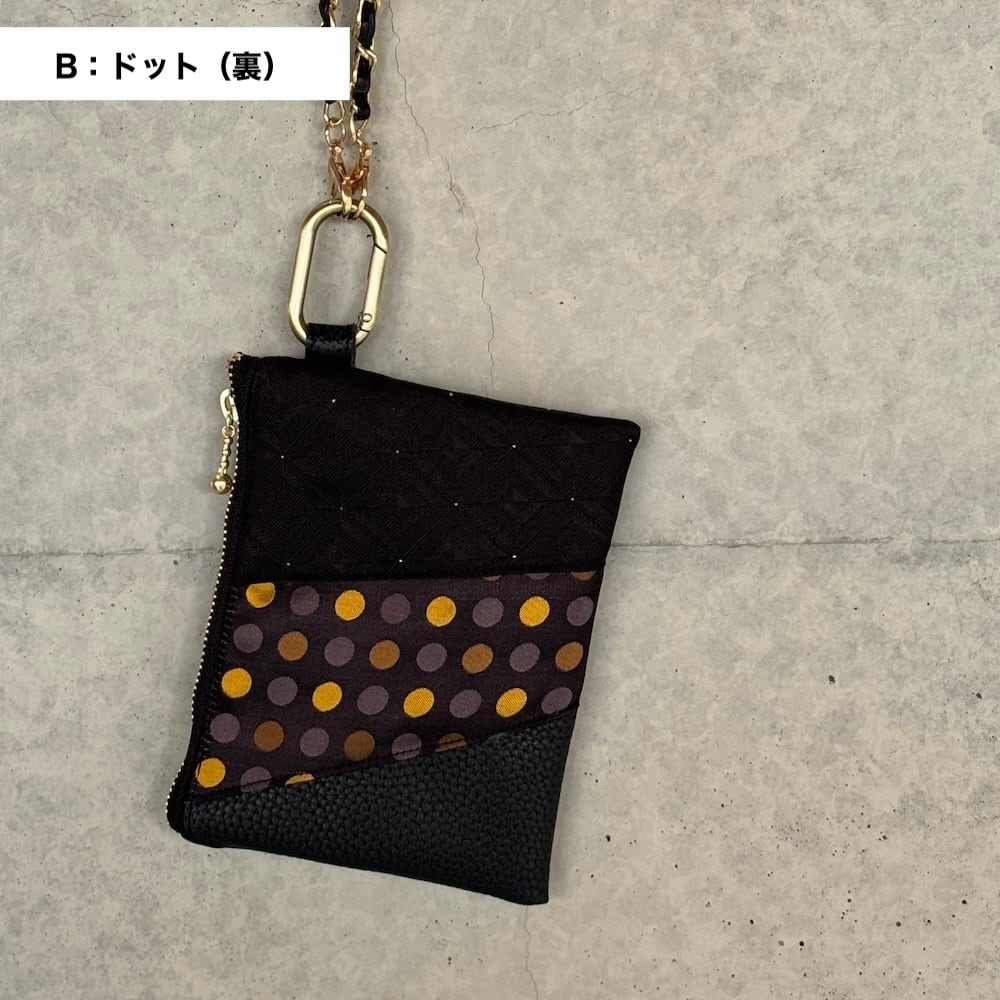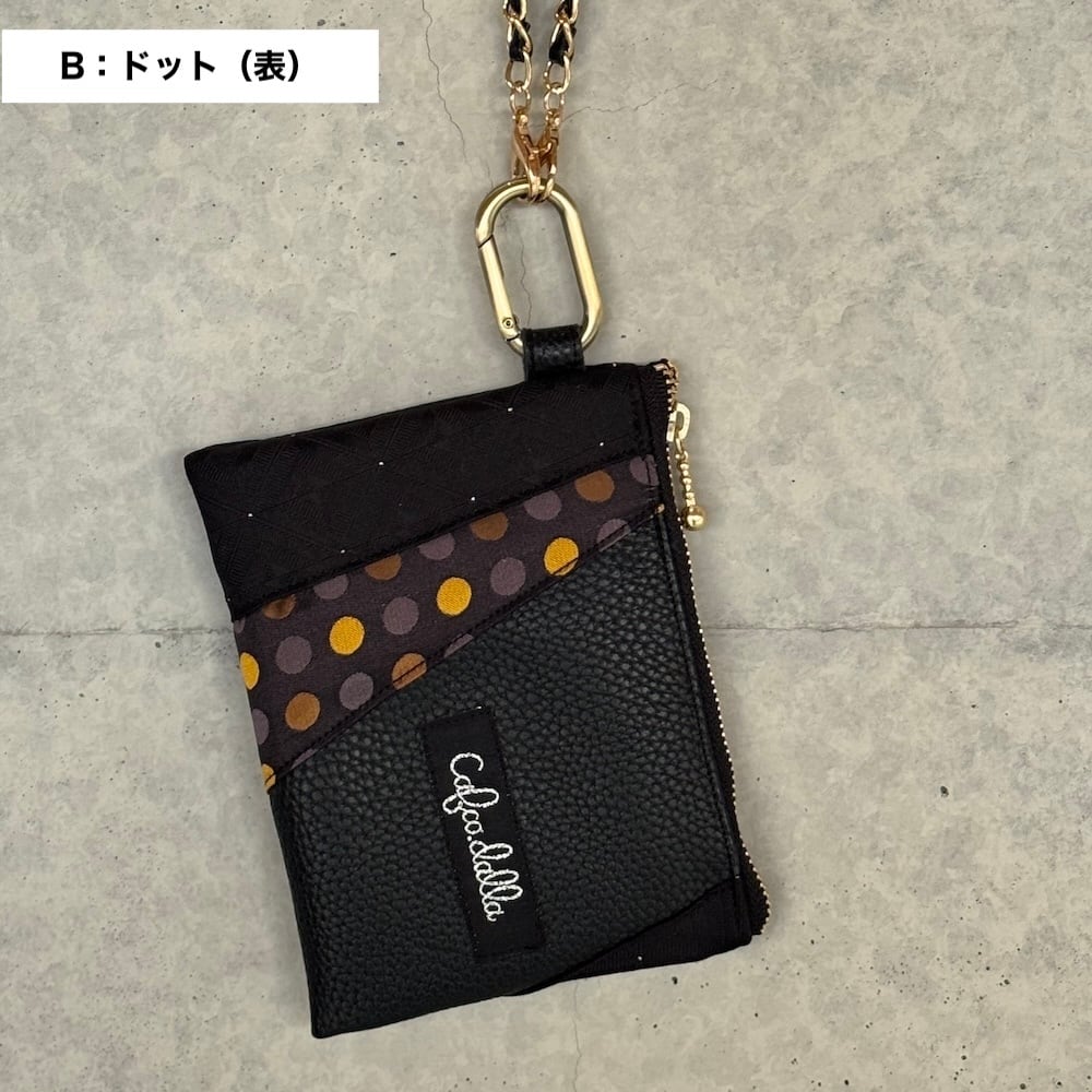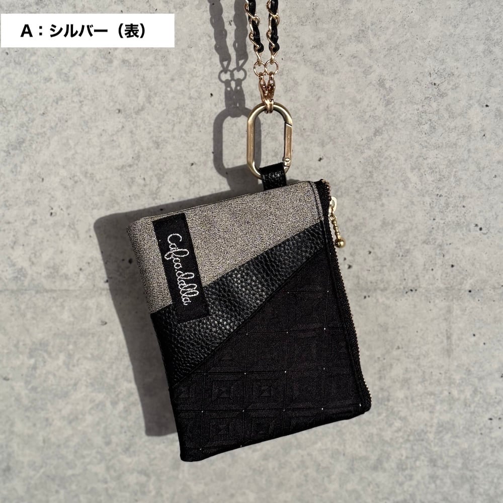 国産シルクを使用したCafco.dallaオリジナルのシルク生地と、厳選して買い付けた西陣織を組み合わせています。(ブラックのチェーンをサービスでおつけします)