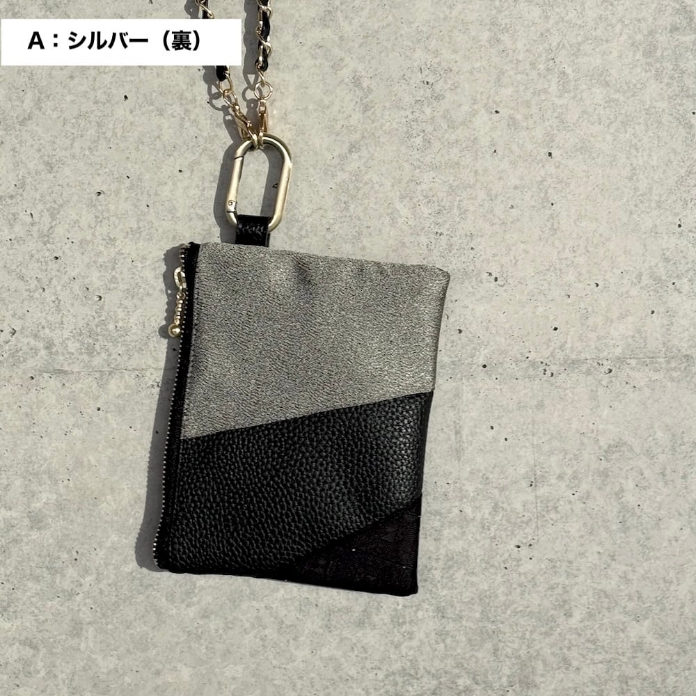 ベースには上質な合皮を使用し、縫製作家の感性で柄の異なるシルク生地をひとつひとつ丁寧に組み合わせた一点もののポーチです。